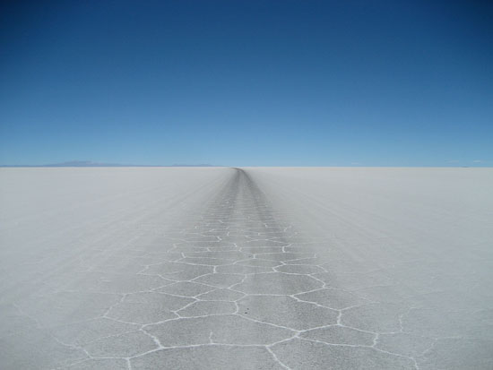 Солончак Уюни — это высохшее соляное озеро на юге пустынной равнины Альтиплано, Боливия. Расположено оно на высоте около 3650 метров над уровнем моря. Внутренняя его часть покрыта слоем поваренной соли толщиной 2–8 метров. Во время сезона дождей солончак покрывается тонким слоем воды и превращается в самую большую в мире зеркальную поверхность.
